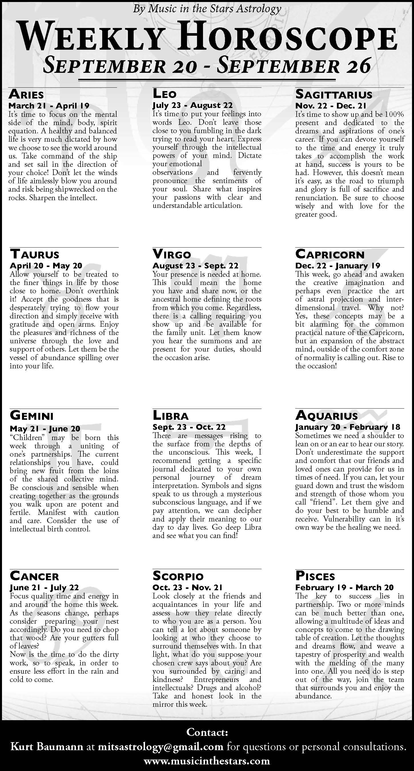 Weekly Horoscope Sept 20 26 Islands Sounder